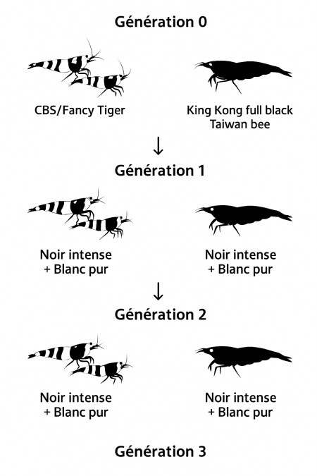 On va me prendre pour un cinglé, mais j'ai demandé à chatgpt de me dire quel croisement de TB je pourrais faire avec ma souche pour améliorer le contraste des couleurs. Il m'a répondu sans hésiter, la King Kong full black. C'est ce qui est le plus compatible avec l'ascendance CBS/Tiger de mes Caridina. J'ai peur qu'en mettant quelques choses de plus compliqué comme des galaxy ou autres, ça me donne vraiment n'importe quoi...