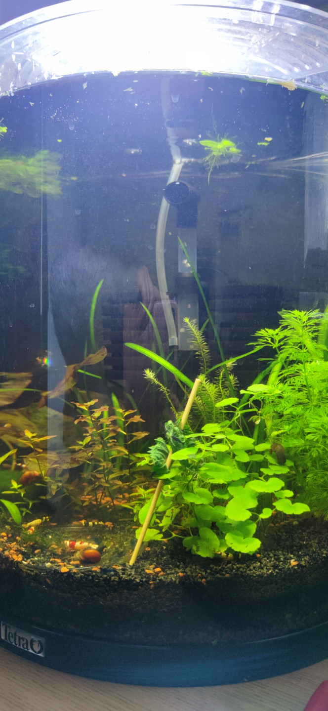 Pour les crevettes j'ai des bleus foncé ( objectif noir donc je fait de la sélection ) et des crystal Red et black, mais je m'inquiète pas car il est vraiment moue et les crevettes son des rapides ! C'est un betta koï, mais il a le comportement d'un poisson lourds il est dans une animalerie depuis un moment et il est souvent au fond ou sur la filtration en mode " blazer" c'est un peux pour ça que je veux le sortir de la .... Les filtre exosteur ne fond pas de courant, je change de l'eau régulièrement car je suis très à cheval sur les paramètres de mes crevettes donc ça compense avec le filtre !