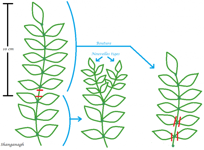 Bonjour à tous, petite question qui n’a pas énormément d’importance mais je voulais m’assurer d’une chose. Quand on veut bouturer une plante et qu’on dit de couper en dessous d’un noeud, on est d’accord qu’on coup au niveau du trait bleu comme sur la photo et pas du trait rouge c’est bien ça ?