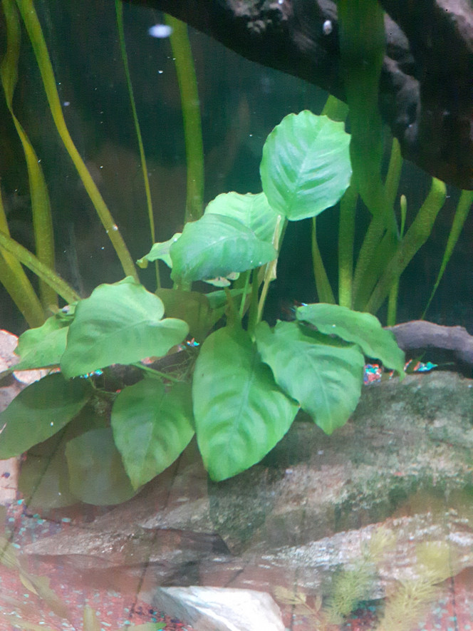 Bonjour, j'ai un petit soucis dans mon 100L, pas grave pour le moment mais je préfère savoir les raisons dès maintenant plutôt que de laisser trainer. Voila sur certaines de mes plantes comme vous pouvez le voir sur mes anubias en photo, j'ai des algues qui se colle sur mes feuille (des sorte de point incrusté sur la feuille), sur d'autre je retrouve des trou dans les feuilles donc je pense a un d... Afficher la suite