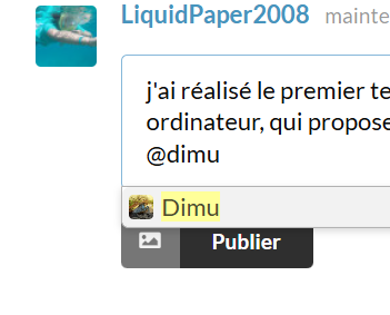 @Aleau ,exactement …pour cela il faut @ puis son nom et regarder le tableau qui s affiche en dessous ,trouver son nom parmi d autres qui commencent de la même façon et cliquer dessus .