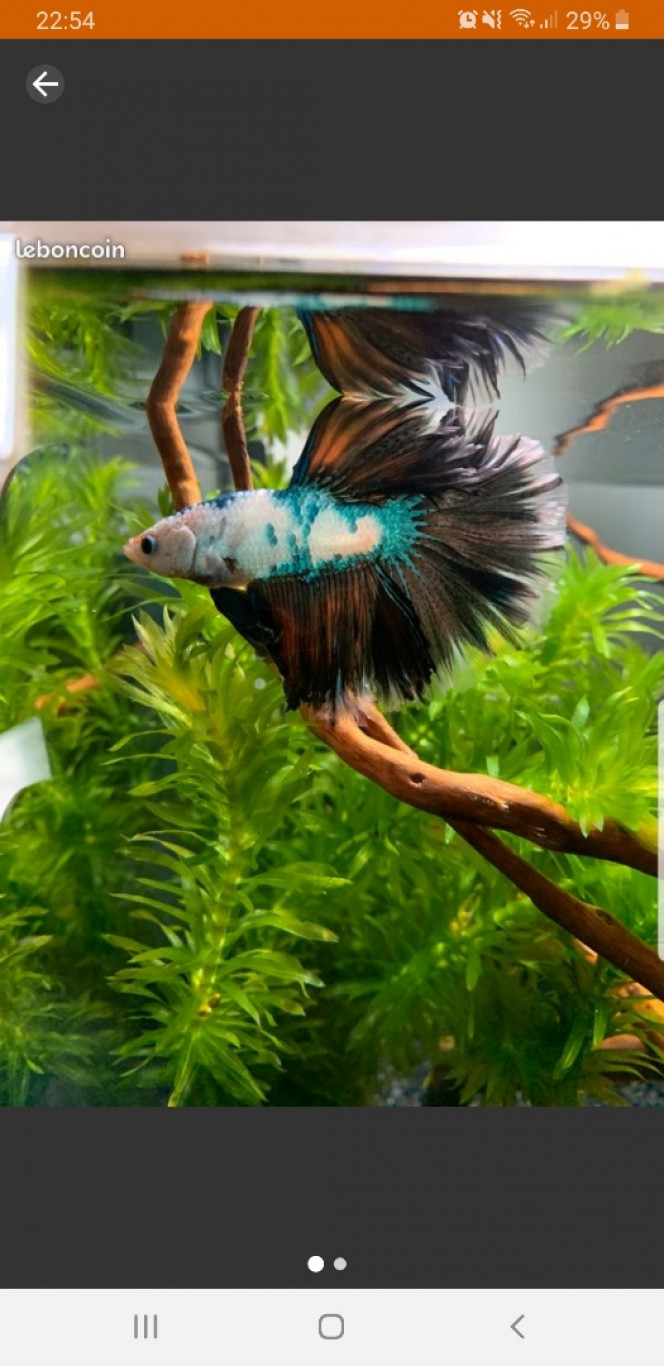 Bonjour, Je ne connais rien aux Bettas, mais en général les beaux poissons avec de belles et grandes nageoires craignent un peu les autres poissons qui leurs mordillent les nageoires. S'il sort tout juste d'animalerie... entre le stress et les batailles de poissons c'est sans doute normal.