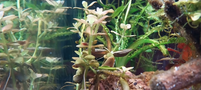 Tout se passe bien, je suis surpris par la bacopa purple, elle reprend bien ,mais sur des tiges qui me semble en cours de vitrification....
