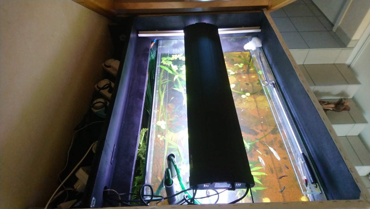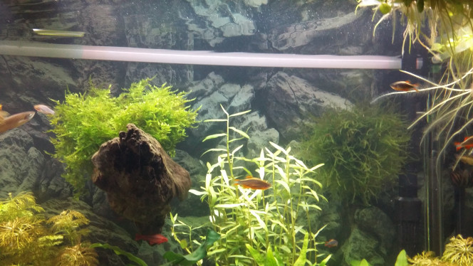 Une rampe principale pour L'aquarium (plante, poissons) un simple ruban à led étanche collé sur mon meuble (10cm disponible entre L'aquarium et la planche du meuble. Un petit "aquarium" ou tu peux mettre des fausses plantes créant ainsi un effet de profondeur supplémentaire) ;)