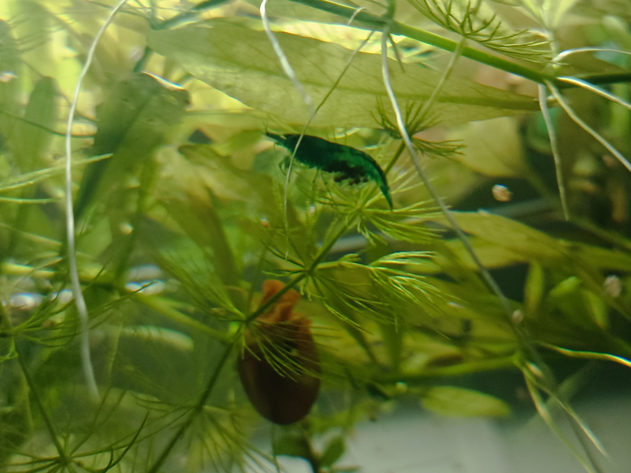 C'est mon premier aquarium, en eau depuis 2 mois, j'ai tout le temps peur d'avoir commis des erreurs de débutant fatales, mais ma première Neocaridina grainée a l'air en super forme, les œufs bien colorés, tout.