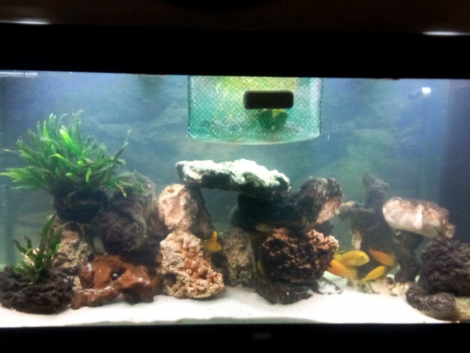 En ce qui concerne le 360L Malawi, on ne fait rien pour l'instant car je ne veux pas soumettre les poissons aux traitements que je vais employer (cyanocell notamment) et on n'est pas à un mois près. Une fois les poissons déménagés, le bac sera traité, la décante va sauter (cyano entre la décante et la vitre, bien installée), je pourrais ensuite traiter les pierres. Je fais partir 6 ou 7 jeunes labidos histoire d'alléger la pop car je trouve le 300L un peu juste pour 25 poissons. Pour les alevins, je crée un autre post.