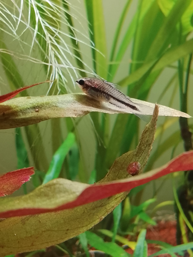 Depuis 3 semaines, j'ai remarqué une plaie chez mon corydora pygmée le plus âgé et le plus gros. Plaie située derrière les ouïes. Au départ, j'ai constaté une couleur plutôt rouge , ce n'était pas forcément une plaie, comme une épaisseur plus fine ou un absence d'écailles. Un côté plus prononcé que l'autre. Ensuite ça c'est creusé, comme un trou bien rouge. En surveillant, j'ai remarqué que le trou se refermait.