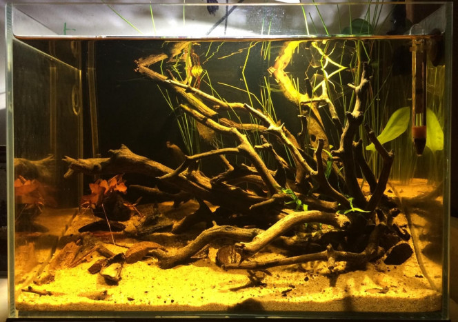 Coucou! Donc des nouvelles sur ce que j'aimerais faire avec ce 20L, je pense faire un blackwater avec des racines dans ce style (voir photos exemples, trouvées sur internet). Je pense à des eleocharis comme les grandes que j'ai dans l'iwagumi pour mettre une petite touche de vert dans ce brun, peut-être aissi des anubias. Pour la faune, je pense avant tout à des petits trucs type aselles, gamarres, mais si possible (problème avec le tanin?), j'aimerais y ajouter des crevettes. Bien sûr, Dimu m'a convaincu d'adorer la tiger racoon, mais comme je ne sais toujours pas comment les invoquer dans mon pays, je vais devoir m'en passer pour le moment (même si ce n'était pas pour ce projet, j'en mettrais volontiers dans l'iwagumi ou le 35L).