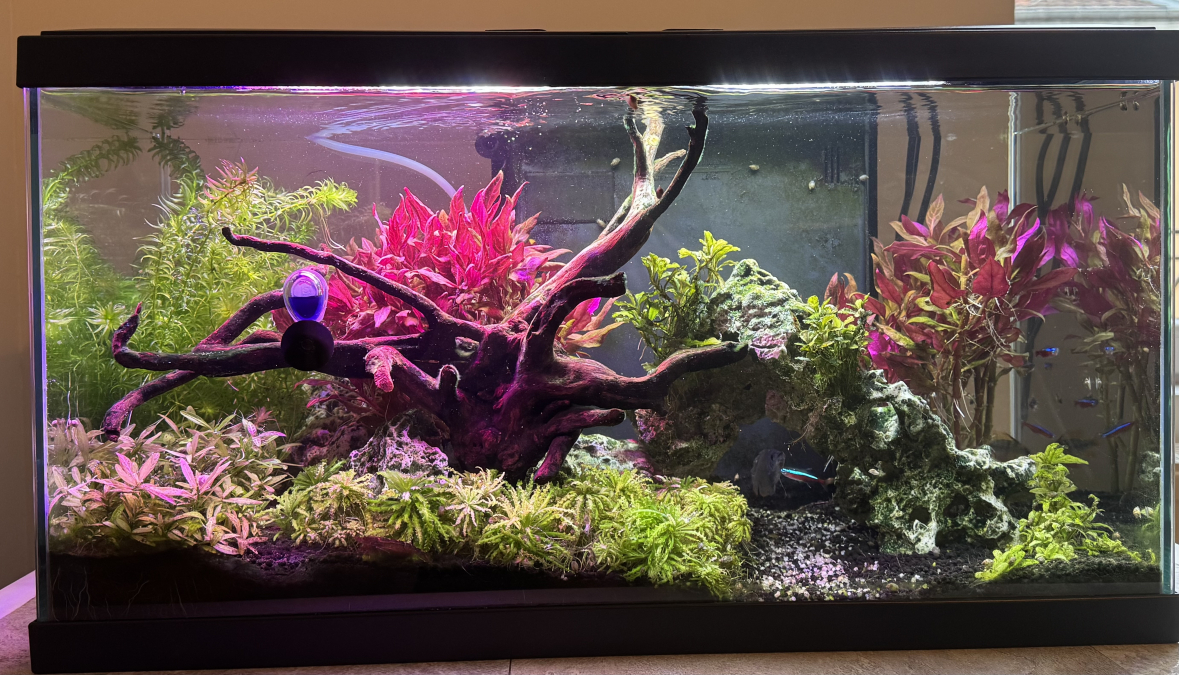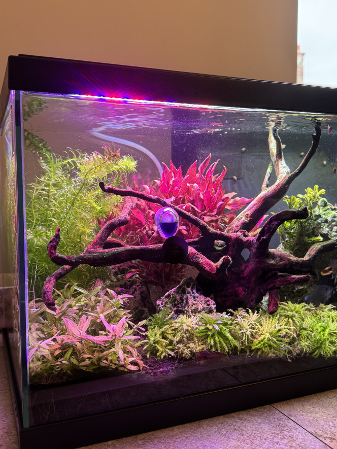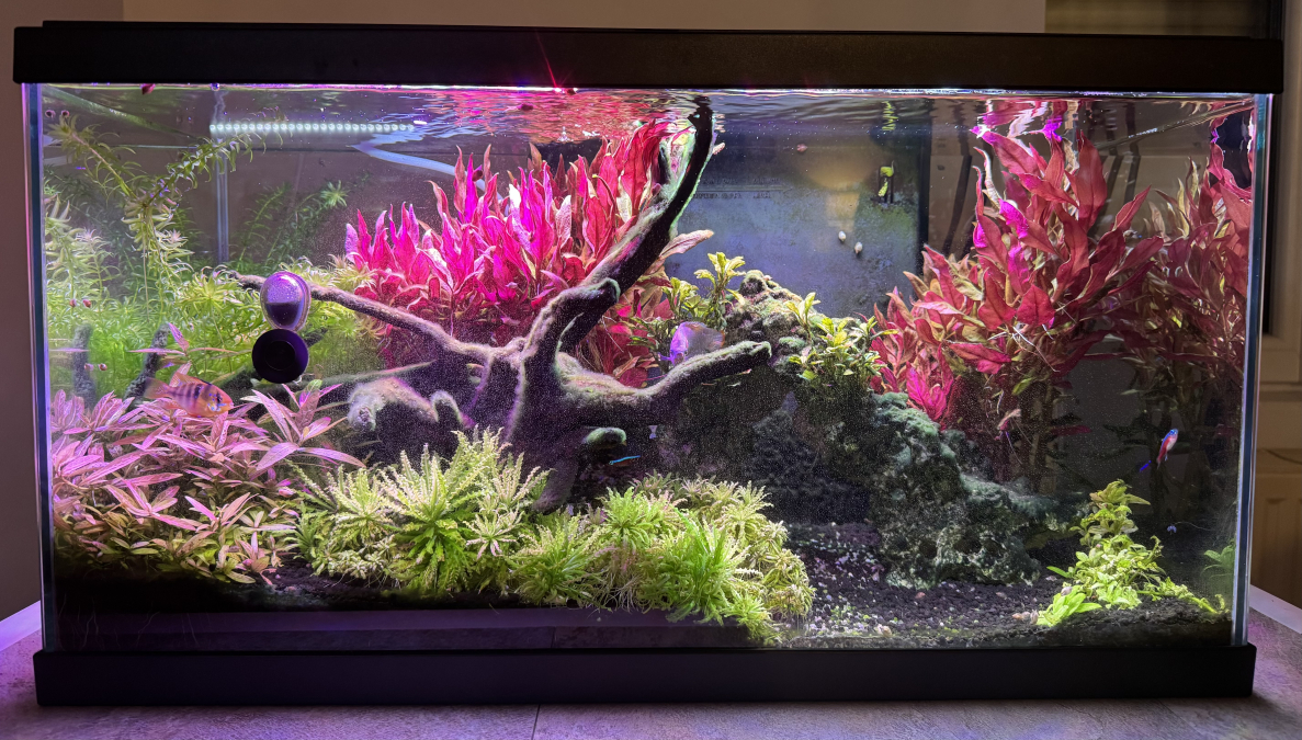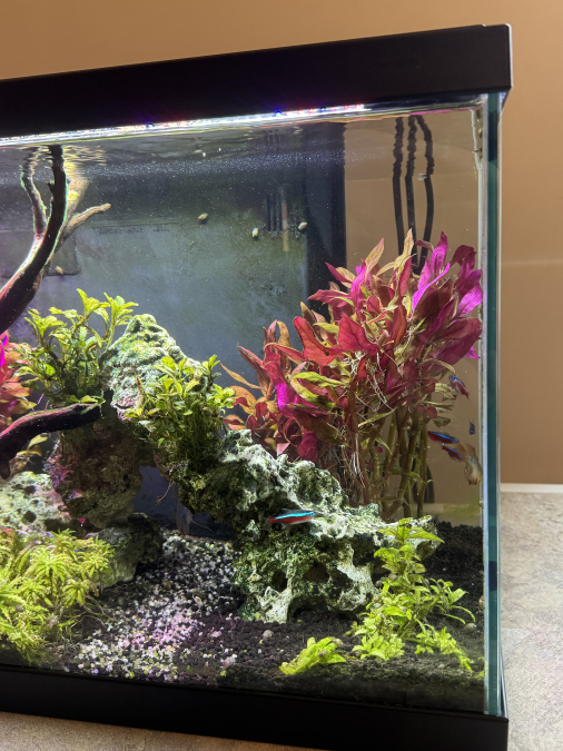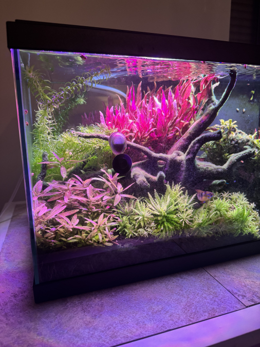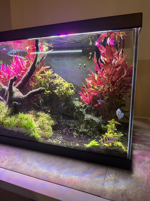 - 6 cardinalis, 1 ramirezi (2 au départ mais mort de la femelle), 5 caridina multidentata et mon gourami (2 au départ mais mort du mâle il y a peu de temps).