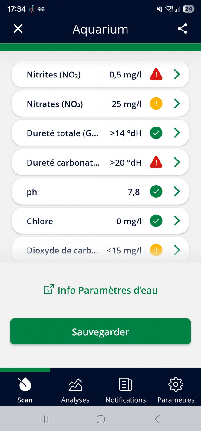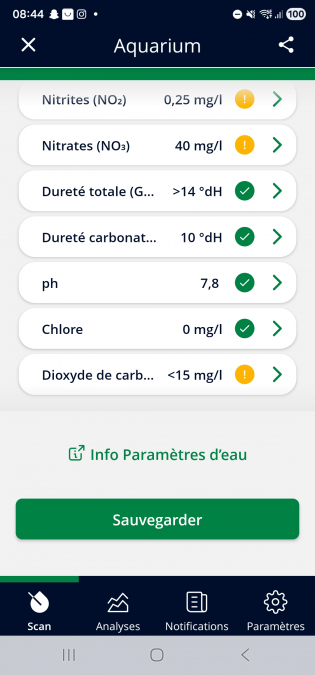 Par contre t’es certains de t’es mesures pour t’es nitrite No2 et tes Nitrate No3 ? À cette concentration de No2 t’es poissons serait déjà tous morts. 0.4mg/l étant déjà la limite maximal et on est déjà dans le rouge mortel pour les poissons