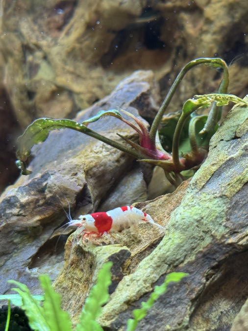 J’ai un bac communautaire de 250L en sol technique + eau osmosée avec Crystal Red + cardinalis + otocinclus et j’ai une femelle CRS grainée.