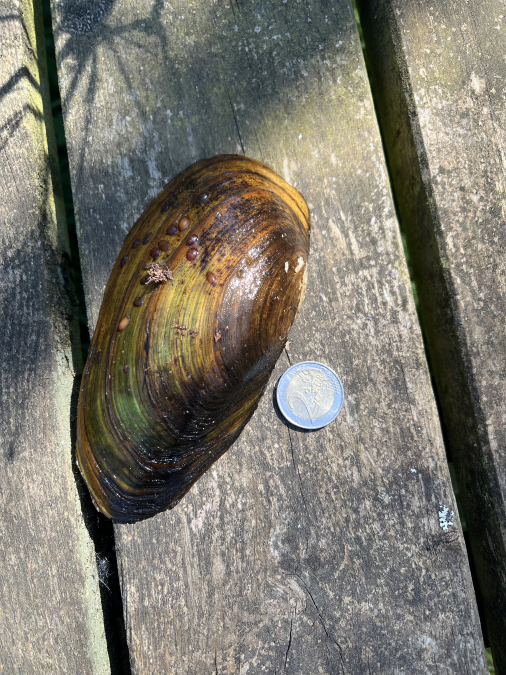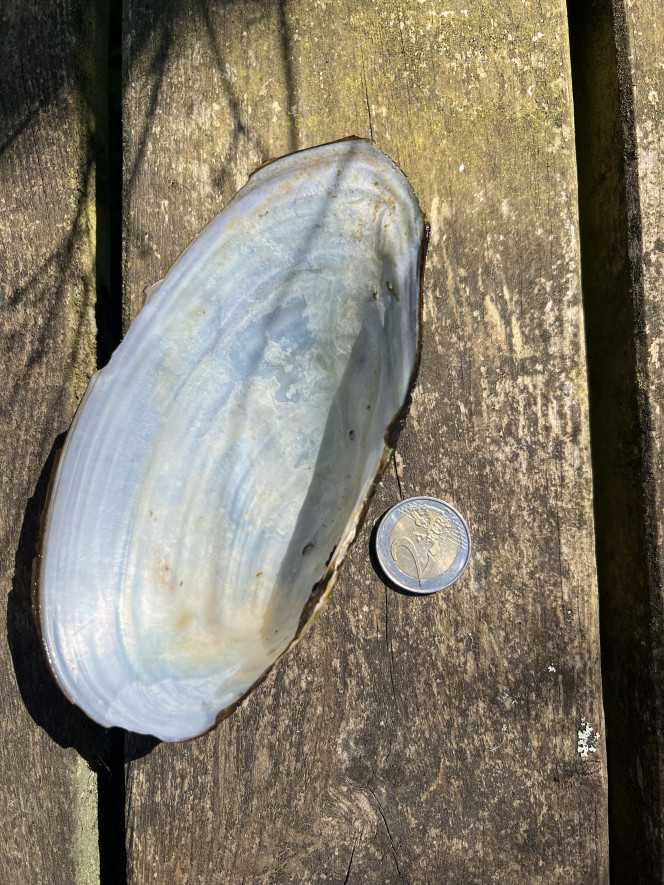 Ici le manque de pluie des dernières semaines nous permet de voir les moules de l’étang enfin surtout les coquilles.