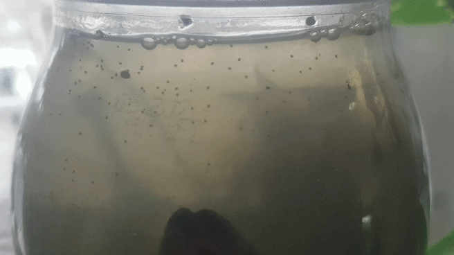 Vous vous souvenez de l'immonde accident de putréfaction dans mon pico marécage de deux litres? L'eau est devenue noire et tous semblais mort. Mais voilà que l'eau s'est éclaircie (aussi claire que l'eau de ce bac peut être) et l'ôdeur ressemble plus à un marais qu'à une charogne. Et devinez quoi? Il y a des centaines de daphnies, bien vivantes! Je n'y crois pas!
