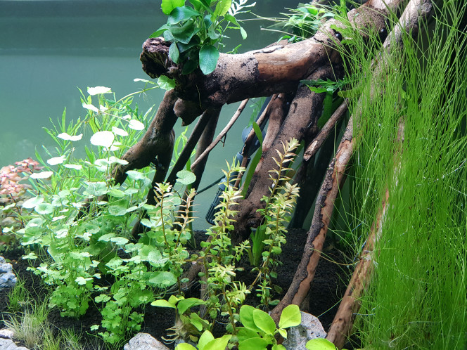 Merci beaucoup pour ces conseils. Je débute mais je me renseigne beaucoup. Mon bac à 6 jours. J'éclaire 6h par jour pour le moment. Pour le moment, je n'ai pas de CO2. Température à 26,5, J'ai un GH à 7,5, un KH à 3,5. Je pensais que mes nombreuses roches allaient rendre l'eau plus dure mais pour le moment, ce n'est pas le cas. Mon PH est à 7. Mes roches sont des "Grey Mountain". Je vais essayer de les brosser mais pas facile à cette profondeur ! Pour les plantes, j'ai choisi peut être un peu trop de diversité, mais c'est aussi pour voir celles qui s'adaptent le mieux, quitte à en supprimer ensuite. J'ai une question : à quel moment dois-je commencer à faire des changements d'eau ? en fonction du taux de nitrate ? (actuellement j'ai 0,4 NO2 et 20 NO3). Merci