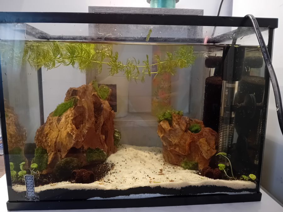 Salut ! J'ai besoin de votre aide il y a quelques moi j'ai eu des crevettes dans mon aquarium communautaire de 190 litres et ducoup j'ai décidé de faire un 20 litres en plus que je vais spécialisé seulement dans les crevettes (néocaridina) il est en cyclage depuis 3 semaines et pas encore de pic de nitrites en vue j'ai ajouté des décors en céramique et noix de coco pour que les bactéries puissent s'installer, et on observe déjà de la microfaunes, (on en vient au sujet) je n'ai jamais été réellement forte pour faire de magnifiques aquarium mais j'ai vraiment envie de faire un aquarium jolie mais surtout que ce soit un vrai paradis pour mes future crevettes ! Est ce que vous avez des idées ou des photos de vos aquas.. sa pourrais peut-être m'aider parce que honnêtement j'ai essayé et je trouve toujours le rendu moche..