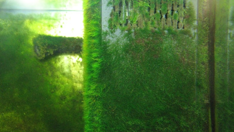 Les boules vertes c'est de la cladophora, ce ne sont pas des plantes mais des algues (ce que l'on essait de fuir à tout prix en aquario), tu devrais les enlever tu risques d'avoir des soucis dans le futur... et les remplacer par plein de vraies plantes :D