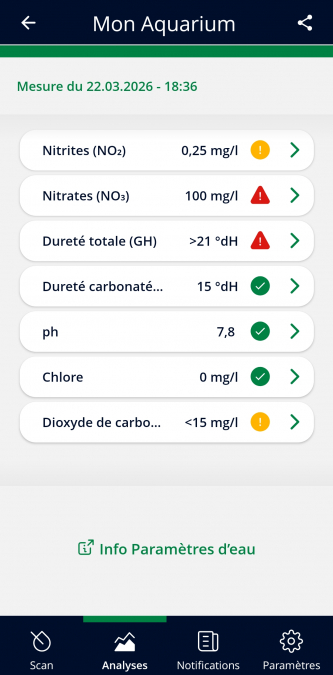 Les tests en gouttes sont bien plus précis et fiables. Vérifie déjà que tes tests ne sont pas périmés. Et investis dans un kit de tests NO2 et NO3 en priorité.