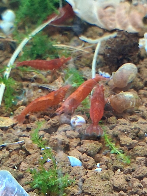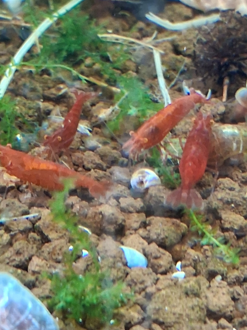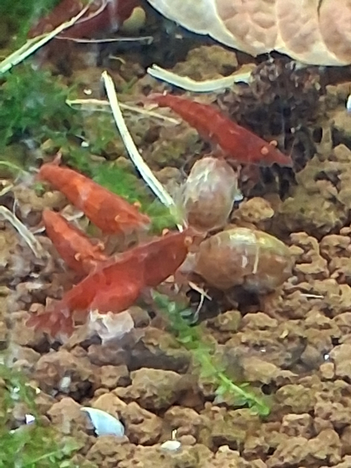 @StephL, Toutes sortes de nourritures , légumes pochés , feuilles séchées , pellets pour crevettes etc........
