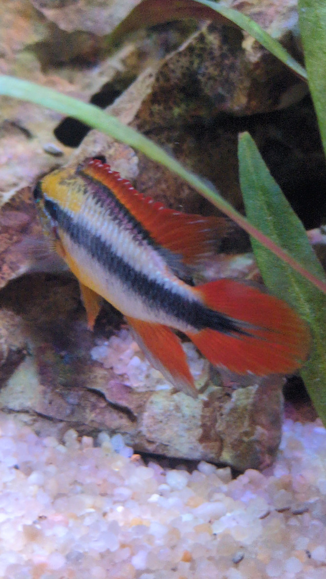 Ajout de 3 couples de ramirezi : Pour l’instant les mâles roulent des mécaniques pour déterminer qui prend quel bout de l’aquarium.