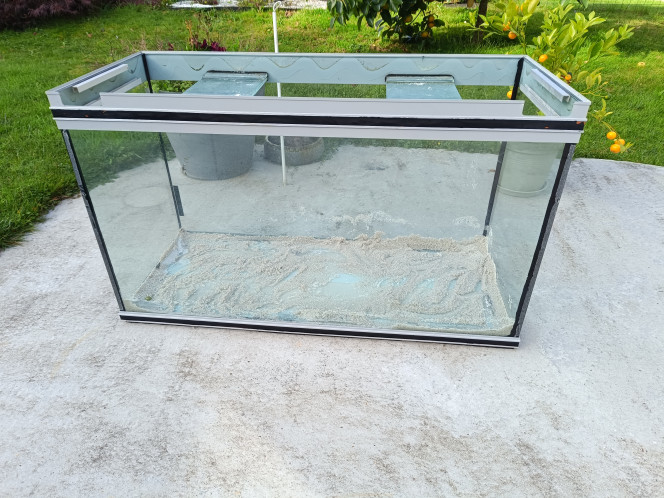 Il est tombé à l'eau mais grâce à mon cher et tendre,le Père Noël passe en avance et j aurai une autre cuve d ici peu.Pour ceux qui se demandent qui est mon père noël,c est Aquatech.J ai squatté son bac "Rivière" avec mes quelques plantes récupérées.