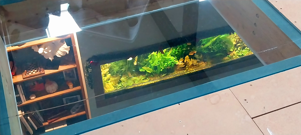 Merci messieurs, oui Laurent il s agit bien d un plancher de verre, histoire d'apporter un peu plus de lumière au salon...