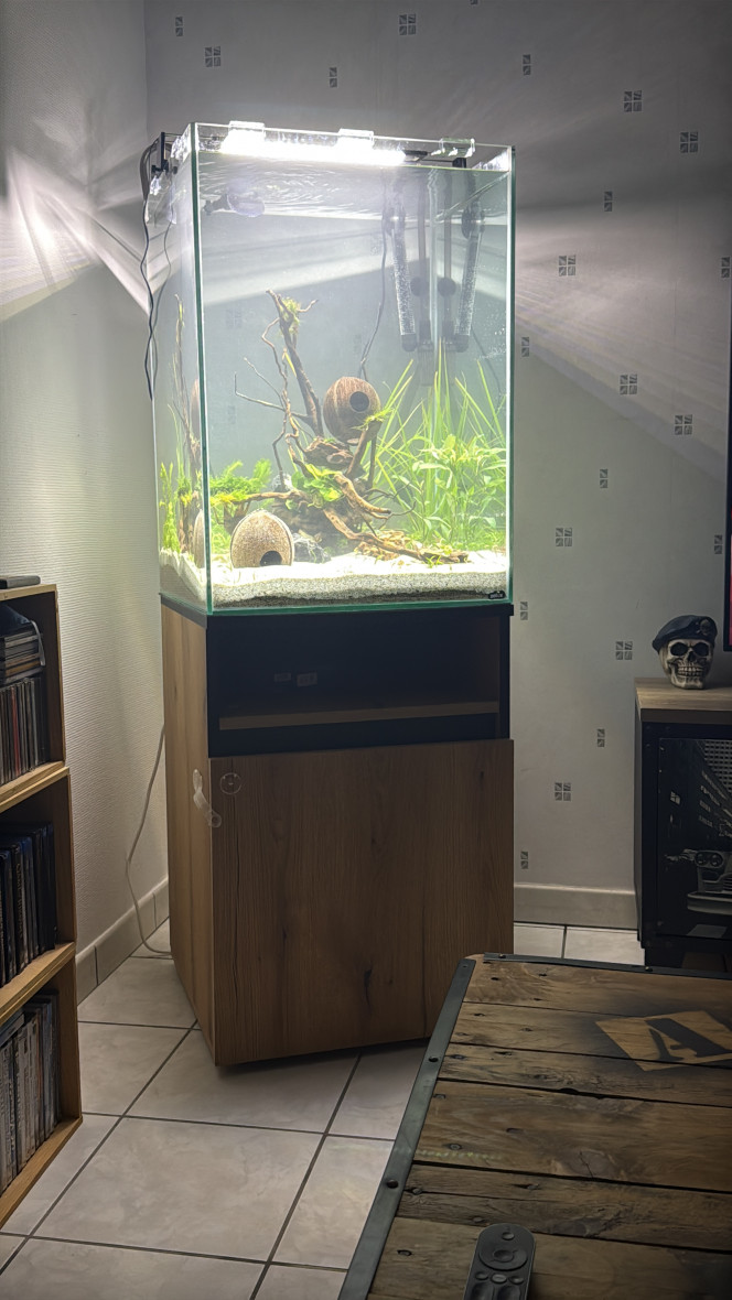 Si tu mets des crevettes et que tes plantes du fond poussent elles vont s'éclater à grimper !