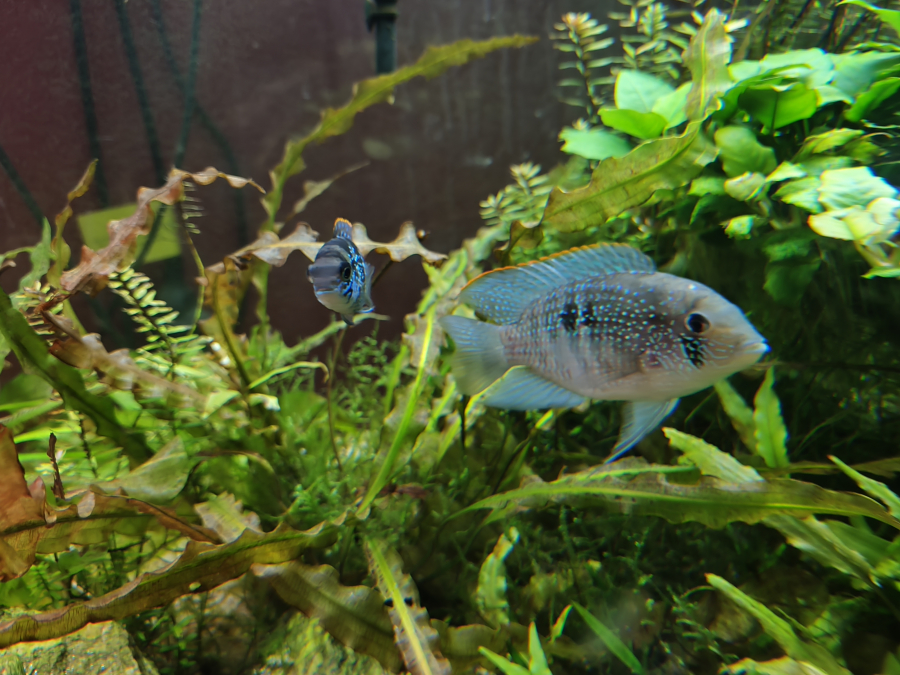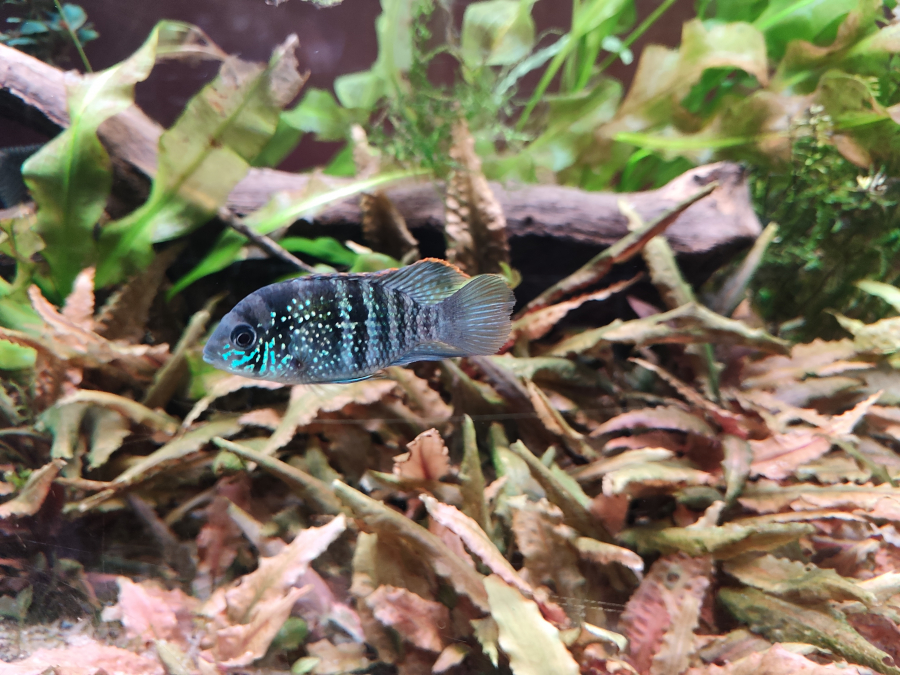 J'ai 3 couples formés dans le 1000 qui ont tous déjà pondu plusieurs fois. Avant qu'ils déménagent dans le 1000, ils étaient en croissance dans le 300 et avant de partir, ils ont laissé une ponte dedans... J'ai donc 8 jeunes Acaras subadultes en croissance dans le 300 (sur 61 alevins).