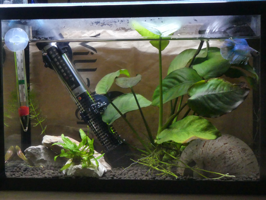 9 litres (à remplir totalement), c'est vraiment trop petit ! Même un betta a besoin d'un minimum d'espace pour vivre décemment. 20 litres, c'est le minimum, 30 litres c'est mieux.