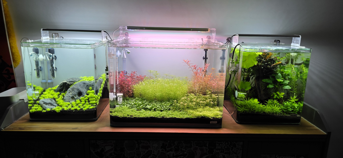 70l hollandais : Petite taille dans le 70 L pour que toutes les plantes profitent bien de la lumière. En fin de semaine, j’augmenterai légèrement la puissance, progressivement 😁
