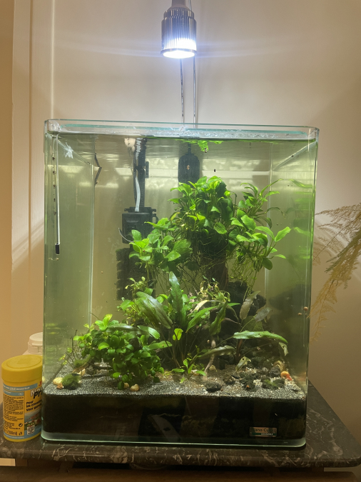 Aquarium repris entièrement, en eau depuis deux ans au moins dans cet état. A déménagé en eau y’a six mois.