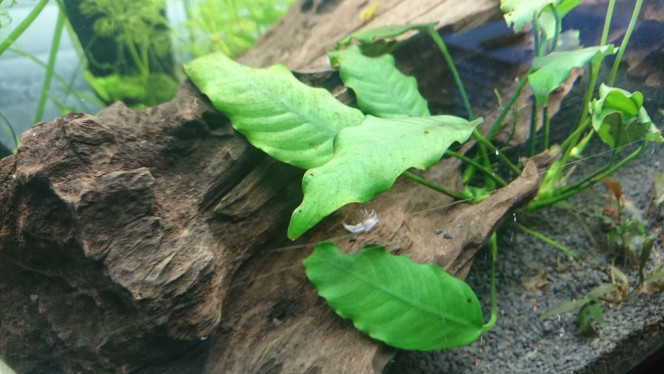 Dans le bac mais c'est pas les bonnes photos... Je suis une quiche ! J'aurais bien pris une photo des cagouilles mais pour le moment ils explorent le sous-sol :p