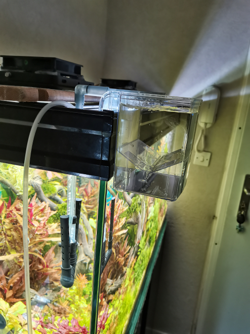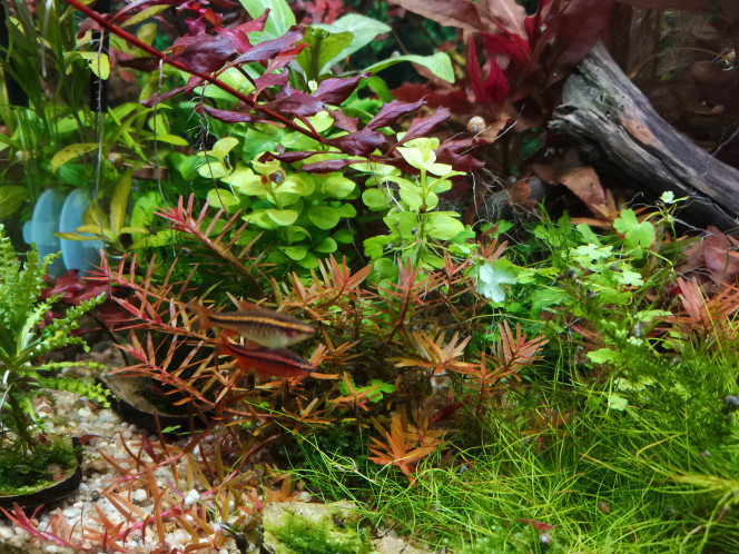 Le chambre d'hôtel est prête : Mais entre le renfort central, le capot avec les spot, la rampe Led, les plantes, les racines et mon épuisette à crevette., j'ai abandonner dlez choper pour les isoler le p'tit couple de barbue cerise :(