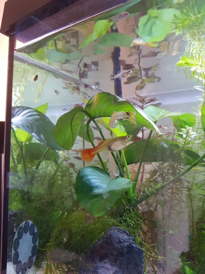 Petits guppies : Guppies nés fin janvier... ils font maintenant 2 cm et prennent des couleurs... ♡