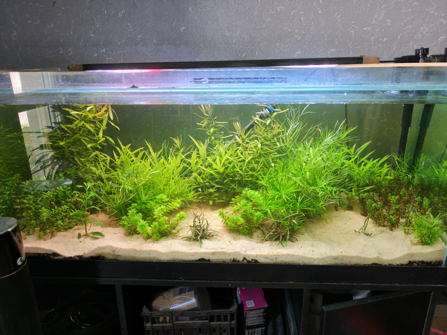 300L Croissance - MAJ Photo : Bac entièrement refait. Au centre, il y a normalement une racine de Mopani mais elle a été retirée provisoirement car elle se couvrait de filamenteuses vertes. Elle sera remise en place quand le bac sera équilibré.