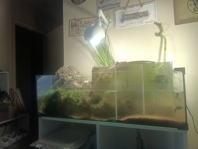 PS : je ne comprends pas la conception de ton double aquarium. Ce qui est sûr c'est que l'espace de vie est très réduit...