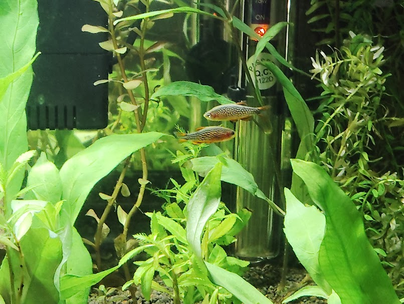Les galaxy sont merveilleux et extrêmement facile à reproduire, seulement ils sont très peureux et se cachent au moindre geste. Ils ne supportent pas un aquarium communautaire