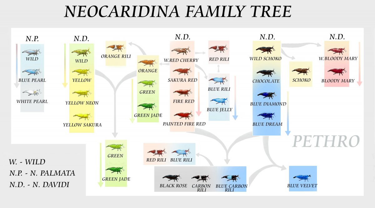 Par contre des neocaridina de différentes couleurs vont s'hybrider.....