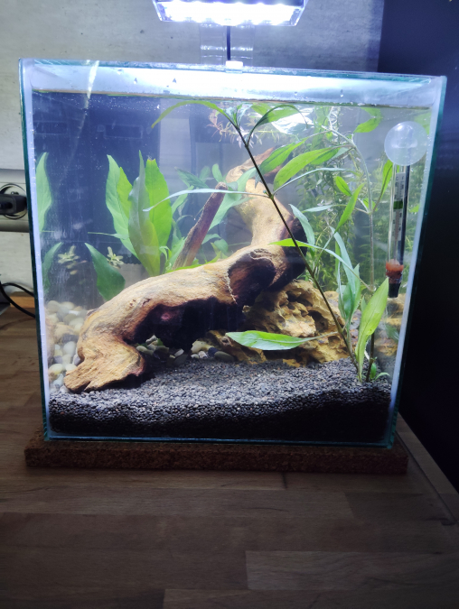 J ai mis en haut mon nano aquarium de 20 litres aujourd'hui, tout équipé. Je pense y mettre des crevettes, ou un betta, mais pas sur que ce soit assez grand pour lui.