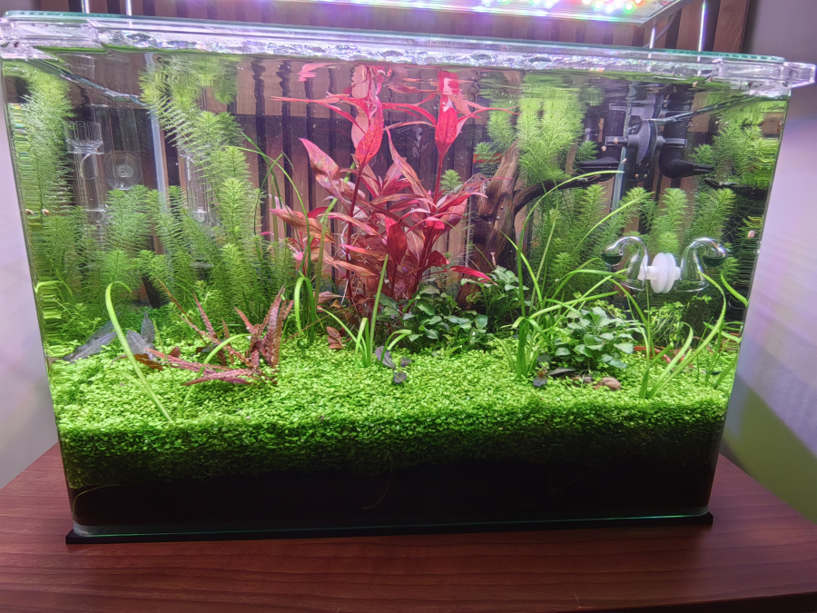 Évolution du bac, avec augmentation du groupe de myriophilum Guyana a droite.