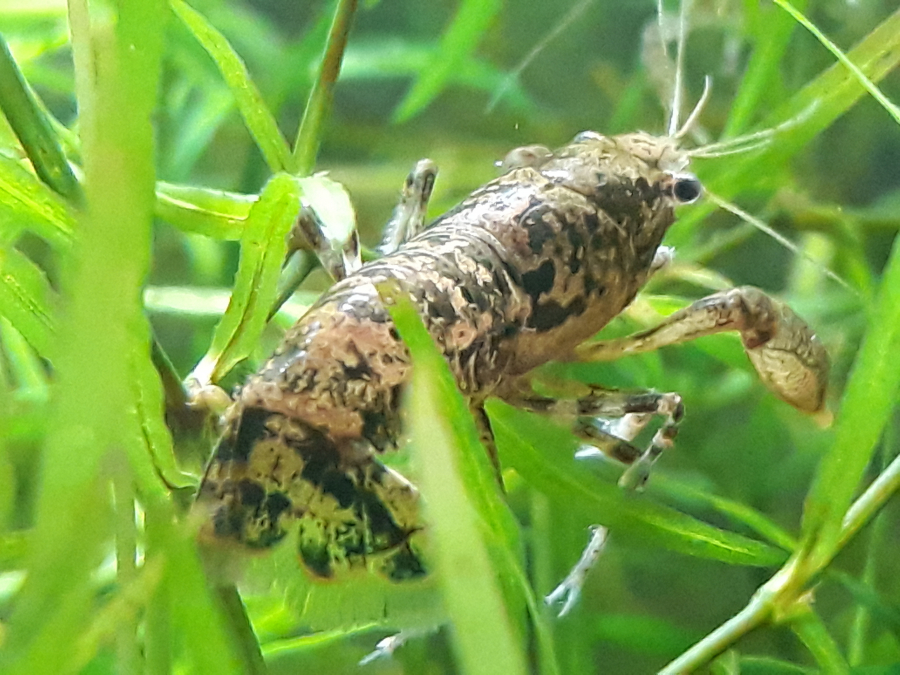 C'est vrai qu'elle sont trop mignonnes ces petites écrevisses. En observant les juvéniles d'un centimètre, on peut déjà s'apercevoir des différences de coloration et pratiquement dire s'il s'agit de mâles ou de femelles.