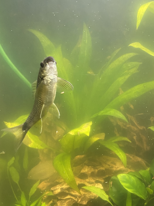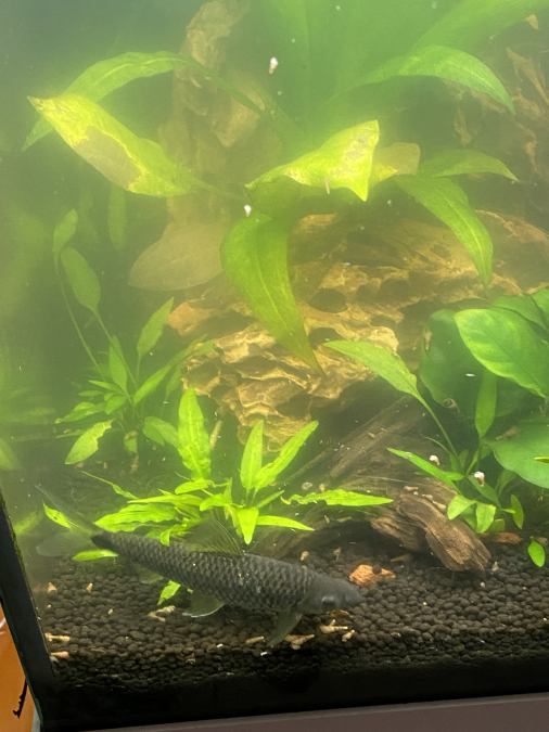 La personne chez qui j’ai acheter l’aquarium n’avait que ce poisson (dont elle ne connaissait pas le nom) et un ancitrus. Pour éviter qu’elle le jette (c ce qu’elle voulait faire) je l’ai garder sans savoir de quel poisson il s’agit . Voilà pour la petite histoire 😊