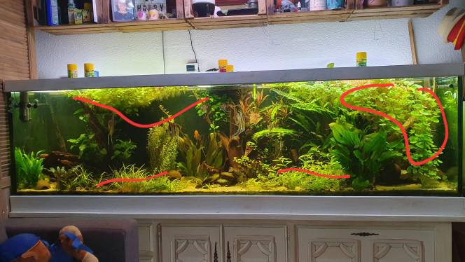 Il va falloir faire des travaux...le vide créé par les plantes retiré en attente de pousse d'autre plantes déséquilibrent le bac laissant le loisir à l'hydrocotyle de tout envahir, à l'hygrophila de ramper sévèrement.