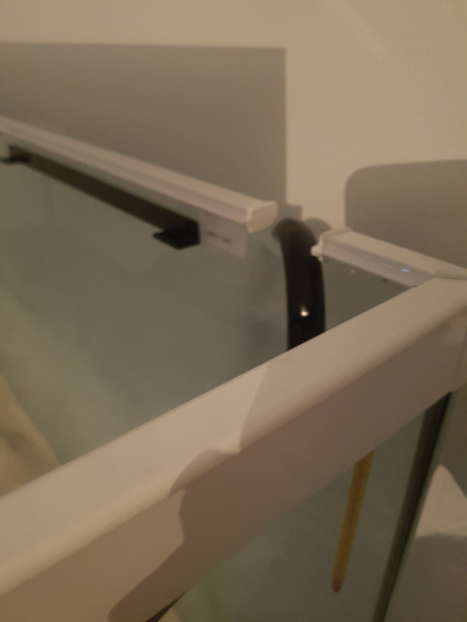 Mon problème c'est qu'Aquatlantis a retiré une partie du métal pour faire passer des cables/tuyaux dans un trou sur la vitre du fond juste d'un côté alors qu'il y a bien un trou en demie-lune des deux côtés.