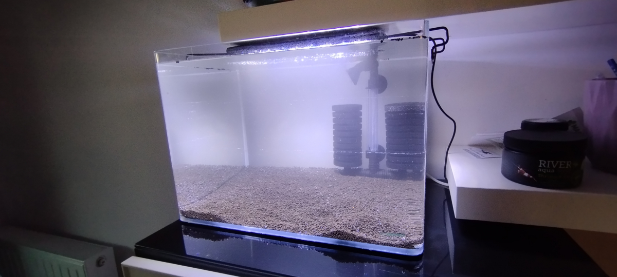 Avec celui ci, comme d'habitude je vais prendre mon temps. La mise en eau est prévue pour demain avec un sol ada amazonia V2. Il va falloir être patient pour le cyclage. Je vais mettre de l'eau osmosée pure au début, puis 80% de changement d'eau après quelques jours puis 50% par semaine pendant un mois environ avec introduction d'eau des autres bacs, etc.