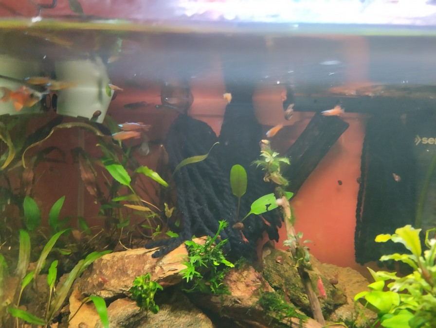 Après 8 mois d'essai de reproductions de Pseudomugil luminatus voici les 9 er issu de mes repro (ils ont 5/6 mois). désolé pour la photo mais ils sont bien vif pas évident.ils font entre 1 cm et 6 mm et 6 autres sont dans la couveuse de 60 l.ils ont rejoint leurs progéniteurs et tout se passe bien même très bien.