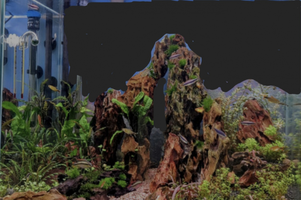 Bon...on ne voit pas grand choses avec la vitre du fond que je laisse être envahie pour les otocinclus 😅 mais avec ton bac nikel, ça amplifierait encore l'effet de perspective