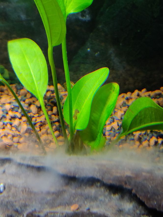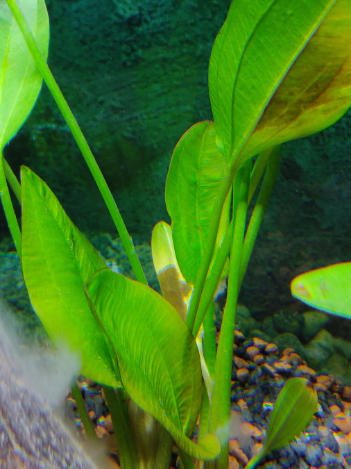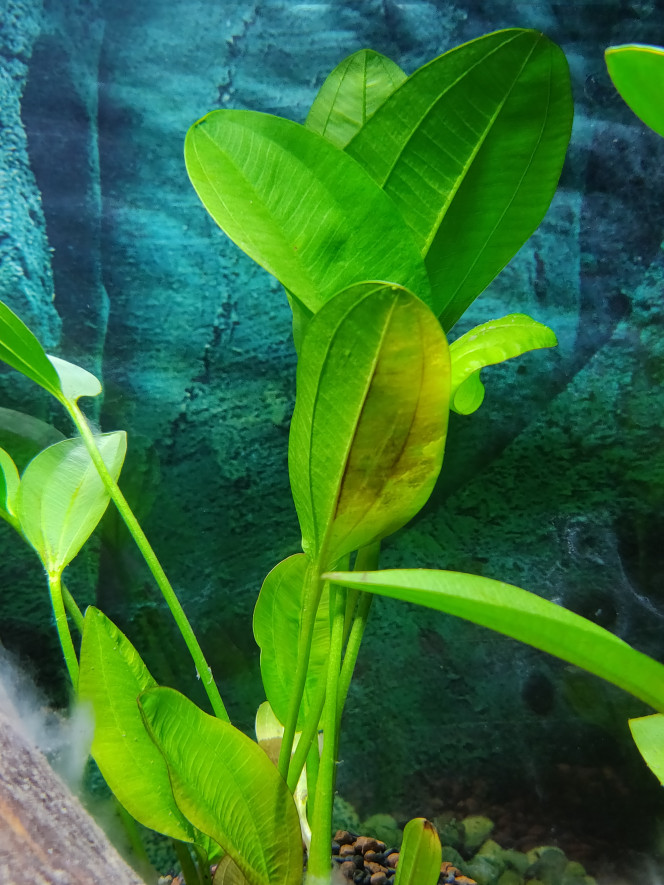 Lorsque j'ai planté mon echinodorus elle a fait exactement la même chose, toutes les feuilles anciennes ont "pourries". Je l'ai laissé malgré tout et elle fait maintenant de nouvelles et très belles feuilles.