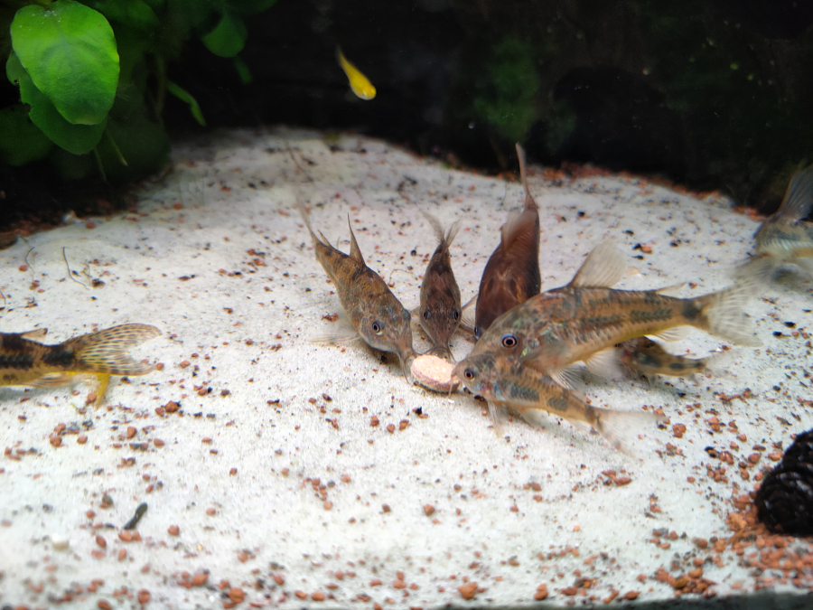 Bonjour les amis, petite question pour un(e) aquariophile. Je donne une ou deux pastilles de fond à mes corydoras le soir. Je colle ces pastilles sur la vitre de l'aquarium d'une pour bien voir que tout le monde mange et de deux, pour éviter que mes crevettes s'en emparent et ne leurs en laissent pas. Ensuite je dois coller la pastille vers le fond car sinon ces feignassent de corydoras ne vont p... Afficher la suite