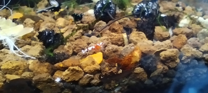 J'espère que sa progéniture survivra. Ça fait longtemps que je n'ai pas vu de naissances, ou si peu, dans ce bac. Mais en arrêtant la fertilisation et le CO2, et en stabilisant la minéralisation de l'eau pour une conductivité électrique de 200us, j'espère que cela suffira à créer un équilibre propice au développement de la colonie.
