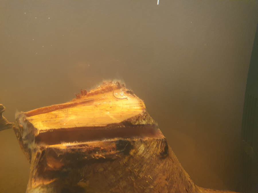 Salut, je viens d avoir un aquarium de 100L avec un couplé de gourami miel, un ancistrus. Et j ai incorporé un morceau de bois qui a relâché du tannins, (que je ne veux pas), comment l enlever ? Et une matière blanche est apparue, (voir les photos). Est ce dangereux, bien ? Comment l enlever ?